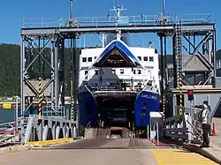 - vraisemblablement établie par reconnaissance tacite du gouvernement du Québec[18], la ligne de partage des eaux, jusqu'au détroit d'Hudson, le point terminal étant le cap Chidley, sur l'île de Killiniq[loi 15]. Cela dit, malgré la délimitation juridique de la frontière séparant le Québec du Labrador, quelques zones frontalières ne peuvent être démarquées sur le terrain et ce, du fait de la réalité géographique du drainage des eaux, qui, dans les hauteurs des terres, coulent, selon les saisons et sous l'effet de divers facteurs, soit alternativement, soit simultanément, dans les deux bassins versants qui définissent, d'une part, le territoire du Labrador et, d'autre part, la province de Québec, rendant ainsi difficile, voire impossible, la mise en place de bornes qui détermineraient une ligne de partage des eaux qui soit stable et permanente[24].