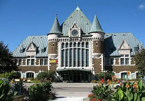 Québec fait partie du corridor Québec-Windsor du service de train assuré par Via Rail, une société du gouvernement fédéral. La Gare du Palais sert de terminus central et est présentée comme une œuvre architecturale.