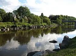 Beaucoup plus tard, lorsque la ville prend de l'envergure et après la tentative manquée de l’amiral William Phips[60]de prendre Québec en 1690, le gouverneur Frontenac[61]fit ériger des remparts à l’ouest de la ville. Une cinquantaine d’années plus tard, sous la menace d’une nouvelle guerre contre les Anglais, d’autres remparts sont édifiés un peu plus à l’ouest. Lors d'une excavation, les traces de ces remparts ont été fortuitement retrouvées en 2018[62].