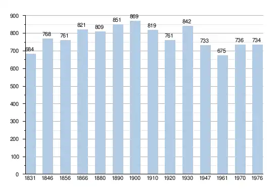 - Sources : INS, Rem. : 1831 jusqu'en 1970 = recensements, 1976 = nombre d'habitants au 31 décembre.