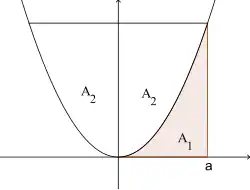 L'aire sous la parabole sur l'intervalle [0, a] correspond à l'intégrale