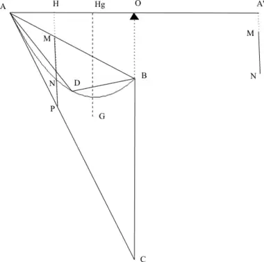 Segment par segment, il équilibre donc le triangle ABC placé en Hg par la portion de parabole placée en A' . Donc