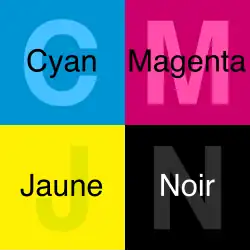 Inventée au XVIIIe siècle par Jacob Christoph Le Blon, la synthèse des couleurs imprimées normalise au début du XXe siècle la composition spectrale et la transparence des encres de couleurs pour permettre l'utilisation commune de la séparation quadrichromique et obtenir un gamut convenant au maximum de sujets. Le nom du bleu-vert normalisé est cyan et celui du rouge violacé normalisé est magenta[1]. On désigne à l'occasion la quadrichromie par le sigle CMJN (pour, cyan-magenta-jaune-noir) ou en anglais CMYK, cyan, magenta, yellow, key où key signifie valeur),