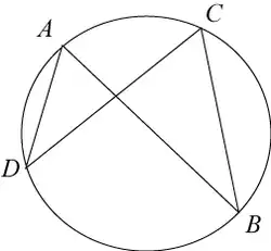 Si le point d'intersection des diagonales divise une diagonale en segments de longueurs et , et divise l'autre diagonale en segments de longueurs et , alors . (Ceci est valable parce que les deux diagonales sont des cordes d'un cercle.)