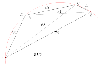 Exemple de quadrilatère de Brahmagupta; l'aire est égale à 966.
