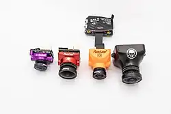 La caméra est un élément essentiel pour le FPV. La priorité de la caméra FPV n'est pas donnée à la haute définition mais à la réduction de la latence entre la prise de vue du capteur et la visualisation par le pilote dans ses lunettes, car le pilote doit pouvoir réagir en synchronisations avec la situation de l'appareil. La résolution doit donc être suffisamment élevée pour voir la situation, mais également suffisamment basse pour pouvoir la traiter rapidement et la transmettre au récepteur. Une caméra annexe de haute qualité peu et est souvent ajoutée, afin de permettre de visualiser plus tard le vol en haute définition.