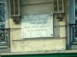 - Le général Thomas Robert Bugeaud y mourut le [6]. Une plaque lui rend hommage.