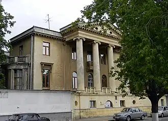 L'hôtel particulier en style néo-palladien est construit par un riche armateur en 1913-1914 par l'architecte Boris Korchounov[27].