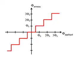 La quantification du flux est une manifestation du caractère quantique de la supraconductivité. Le flux d'un champ magnétique dans un anneau supraconducteur est un multiple entier d'une quantifié appelée quantum de flux magnétique . Il est la manifestation d'une part du caractère macroscopique de la fonction d'onde qui caractérise l'état collectif des électrons dans un supraconducteur, d'autre part de l'effet Meissner.
