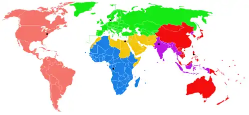 New Delhi pour la région Asie du sud-ouest en violet (la Corée du nord en fait partie),