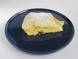 Kugel aux nouilles avec du quark et des raisins
