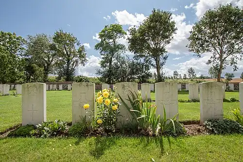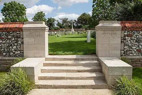 Le cimetière Quarry comporte maintenant 740 sépultures et commémorations du Commonwealth de la Première Guerre mondiale parmi lesquelles 157 ne sont pas identifiées. Il existe un mémorial spécial pour sept victimes connues ou supposées être enterrées parmi elles. D'autres mémoriaux commémorent 19 soldats enterrés dans le cimetière écossais. Le cimetière contient également 16 sépultures de guerre d'autres nationalités.