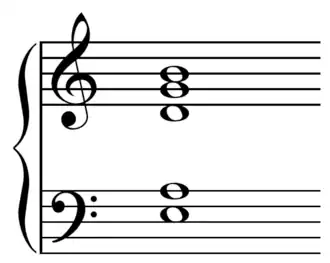 ? Écouter [Fiche]Cet accord peut être compris soit comme un accord de Mi mineur 7 suspendu (Em7sus4), soit comme un polyaccord :