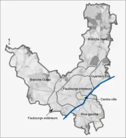 Ces quartiers à finalité statistique ne correspondent pas toujours avec la notion de quartiers « vécus » dont les plus emblématiques restent le quartier du Château et le quartier de La Cité, qui constituent à eux deux le centre-ville historique.