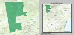 Le 14e district congressionnel de Géorgie a été créé à la suite du recensement de 2010, lorsque la Géorgie a obtenu un 14e siège à la Chambre des Représentants des États-Unis. Le district est représenté par la Républicaine Marjorie Taylor Greene. Localisé dans le nord-ouest de la Géorgie, il fut créé suivant le Recensement de 2010, lorsque l'État a obtenu un 14e siège à la Chambre des Représentants. Avec un indice CPVI de R+22, il est à égalité avec le 9e district comme étant le district le plus républicain de Géorgie[1].
