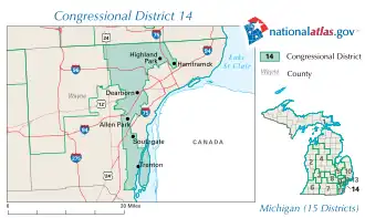 Le 14e district congressionnel du Michigan était un district qui s'étendait de l'est de Détroit vers l'ouest jusqu'à Farmington Hills, puis au nord jusqu'à la banlieue de Pontiac. De 1993 à 2013, il était entièrement basée dans le Comté de Wayne.