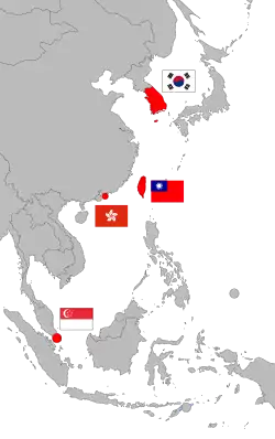 Les quatre dragons asiatiques (chinois simplifié : 亚洲四小龙 ; chinois traditionnel : 亞洲四小龍 ; pinyin : )[1], ou les « cinq dragons asiatiques » (puisque la présence du Japon y est contestée), est une expression qui fait référence à trois États et une colonie britannique d'Extrême-Orient à forte croissance industrielle dans la deuxième moitié du XXe siècle : la Corée du Sud, Taïwan, Hong Kong et Singapour. Le Japon peut également y être inclus, malgré un rayonnement plus important que les quatre autres dragons[réf. nécessaire]. Mis à part dans les textes français, chinois, coréens et japonais, ils sont appelés communément les « quatre tigres asiatiques ». Cependant, ils ne doivent pas être confondus avec les nouveaux Tigres asiatiques, une expression qui concerne la Thaïlande, la Malaisie, l'Indonésie, le Viêt nam et les Philippines.