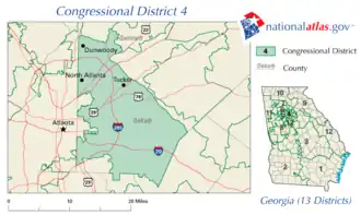 Le 4e district congressionnel de Géorgie est un district de l'État américain de Géorgie. Le district est actuellement représenté par le Démocrate Hank Johnson, bien que les limites du district aient été redessinées à la suite du recensement de 2010, qui a accordé un siège supplémentaire à la Géorgie[1]. La première élection utilisant les nouvelles limites des districts (énumérées ci-dessous) a été les élections au Congrès de 2012.