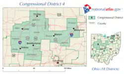 Le 4e district congressionnel de l'Ohio s'étend sur des sections de la partie centrale de l'État. Il est actuellement représenté par le Républicain Jim Jordan, l'actuel Président du Comité Judiciaire de la Chambre, qui représente le district depuis 2007[1].