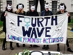 La quatrième vague se concentre sur le harcèlement sexuel (dans la rue par exemple), la discrimination au travail, le body shaming, la représentation sexiste de l'imaginaire de la femme dans les médias, la misogynie en ligne, les agressions dans les transports publics puis sur l'appui sur les médias sociaux pour la communication et l'organisation en ligne[10]. Les événements et les organisations qui en naissent incluent le Everyday Sexism Project[3], le UK Feminista, le mouvement Reclaim the Night, le One Billion Rising[6], et la campagne protestataire Lose the Lads' Mags.