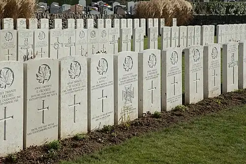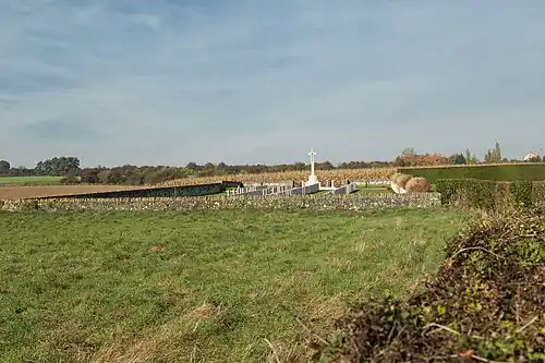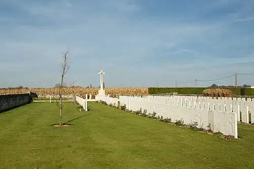 Sur le côté nord du cimetière communal se trouvait un cimetière allemand de près de 600 tombes (1916-1918), maintenant enlevées. Ce cimetière britannique a été créé par des unités de combat, en septembre et . Il comporte 276 tombes de soldats du Commonwealth dont six ne sont pas identifiées. Le cimetière couvre une superficie de 1 011 m2 et est entouré d'un mur en silex et en moellons.
