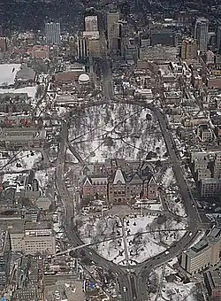 En plus d'être un parc au cœur de la ville de Toronto, Queen's Park est également le siège du gouvernement provincial. Par métonymie, on appelle souvent le gouvernement ou l'édifice de la législature par le nom de Queen's Park.