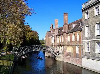 - Mathematical Bridge (Pont Mathématique) : Ce pont en bois est l'un des symboles les plus célèbres de Queens' College. Bien que le pont actuel ait été construit au XVIIIe siècle, il est conçu pour ressembler à un pont en arc sans clé, utilisant un ingénieux arrangement de poutres en bois. Le pont relie les deux rives du fleuve Cam et offre une vue pittoresque sur la rivière.