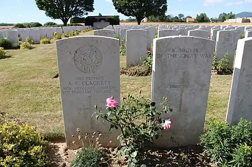 Ce cimetière comporte aujourd'hui 741 tombes de soldats tombés en 1917 et 1918, dont 708 Britanniques, 28 Néo-Zélandais et 5 Français.
