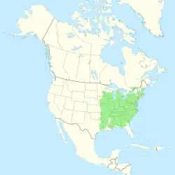Cet arbre se trouve sur une large zone rectangulaire allant du Texas au Wisconsin à l’ouest et du Québec à la Floride à l’est.