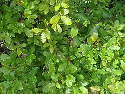- feuilles alternes jusqu'à 15 cm, simples subcoriacées et dentées, de couleur vert sombre et tomenteuses en face inférieure,