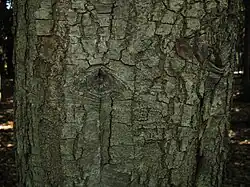 L'espèce peut atteindre jusqu'à 30 m de haut. L'écorce, gris foncé et lisse se craquelle avec l'âge. Les feuilles lancéolées coriaces se terminent en pointe. Leurs bord est serrée à partir du milieu de la feuille. La floraison se produit en avril-mai. C'est une espèce monoïque.