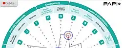 Pour commencer, le candidat est invité à répondre au questionnaire PAPI, généralement par une invitation envoyée par mail. Une fois le questionnaire terminé, les résultats peuvent être édités sous la forme d’une « rosace » sur laquelle les réponses du candidat ont été converties en positionnement, illustrant visuellement son profil. La particularité de la version 3 du PAPI est que cette rosace devient interactive et est consultable sur tablette.