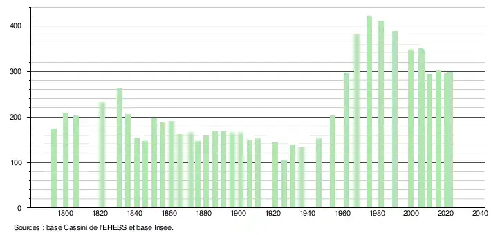 - ↑ Fiches Insee - Populations de référence de la commune pour les années 2006, 2007, 2008, 2009, 2010, 2011, 2012, 2013, 2014, 2015, 2016, 2017, 2018, 2019, 2020, 2021 et 2022.