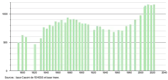 - ↑ Fiches Insee - Populations de référence de la commune pour les années 2006, 2007, 2008, 2009, 2010, 2011, 2012, 2013, 2014, 2015, 2016, 2017, 2018, 2019, 2020, 2021 et 2022.
