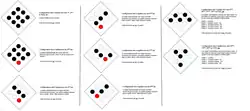Chaque joueur dispose de 17 jets qui sont joués de la façon suivante[5] :