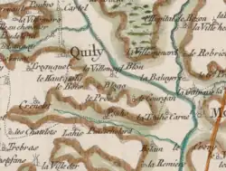 Carte de l'ancienne commune de Quily et des communes avoisinantes.