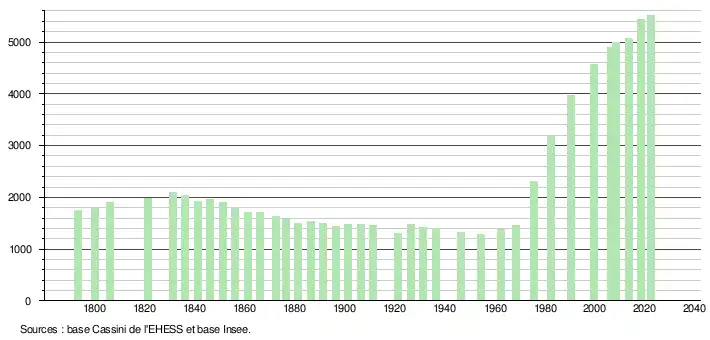 - ↑ Population municipale de référence en vigueur au 1er janvier 2025, millésimée 2022, définie dans les limites territoriales en vigueur au 1er janvier 2024, date de référence statistique : 1er janvier 2022.