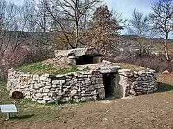 - une seconde période avec des outils fabriqués selon la méthode Levallois (occupation il y a 300 à 150 000 ans[42]). Un des silex provient de gisements situés à 40 (Largue) et 50 km (Sisteron). Ces deux occupations se trouvent dans le fond de la grotte ;