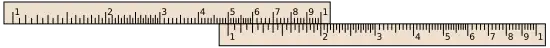 - La réglette centrale peut coulisser par rapport aux deux autres, et permet de décaler des graduations. Elle est souvent graduée des deux côtés :