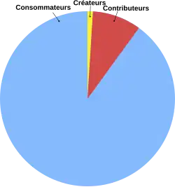 Ainsi, sur Internet, moins de 1 % de la population contribue de façon active, 9 % participe occasionnellement et 90 % sont des consommateurs passifs, qui ne contribuent jamais.