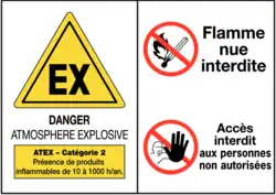 La réglementation ATEX (de ATmosphères EXplosibles) est issue de deux directives européennes (2014/34/UE ou ATEX 95 pour les équipements destinés à être utilisés en zones ATEX, et 1999/92/CE ou ATEX 137 pour la protection des travailleurs).