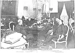 L'approbation de la Ley de Jurisdicciones ouvre une crise au sein du Parti libéral qui se solde avec la démission de Moret en juillet 1906. Trois autres gouvernements libéraux lui succèdent, mais les dissensions entre les factions du parti perdurent, si bien que le roi fait appel en janvier 1907 à Antonio Maura, leader du Parti conservateur, pour former un nouvel exécutif[49]. La question du déclencheur exact de la chute de Moret est débattue, conséquence de l’attentat contre le roi Alphonse XIII et Victoire-Eugénie de Battenberg le jour de leur mariage, le 31 mai 1906, par l’anarchiste Mateo Morral, dont tous deux sortent indemnes[50], ou de la prétention d’obtenir une seconde dissolution du Parlement en faveur des libéraux afin de se doter d’une majorité confortable pour mener une série de réformes très progressistes et considérées comme « funestes » par le camp clérical, incluant la reconnaissance du mariage civil et la sécularisation des cimetières[51].
