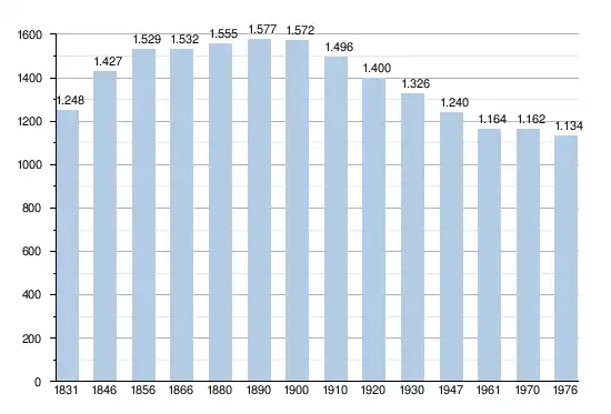 - Sources : INS, Rem. : 1831 jusqu'en 1970 = recensements, 1976 = nombre d'habitants au 31 décembre.