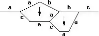 - le système formé des deux règles ab → ε et ba → ε (où ε est le mot vide) est confluent (voir ci-dessous).
