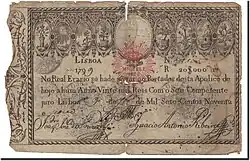 En 1798-1799, du fait des troubles en Europe et sur les mers, le Trésor impérial portugais émet des billets pour la première fois, pour des montants allant de 1 200 à 20 000 réis, qui auront cours forcé jusqu'en 1834, d'abord au moment de l'invasion napoléonienne, puis au moment de la guerre civile portugaise.