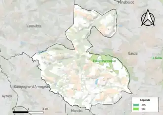Le réseau Natura 2000 est un réseau écologique européen de sites naturels d'intérêt écologique élaboré à partir des directives habitats et oiseaux, constitué de zones spéciales de conservation (ZSC) et de zones de protection spéciale (ZPS)[Note 1]. Un site Natura 2000 a été défini sur la commune au titre de la directive habitats : les « étangs d'Armagnac »[13], d'une superficie de 1 028 ha, un site éclaté composé de plusieurs étangs et leurs abords, d'une zone bocagère, d'une zone forestière et marécageuse, dans le bassin versant de l'Armagnac comprenant les principales populations de la Cistude d'Europe (présence de la plus grande population pour Midi-Pyrénées)[14].