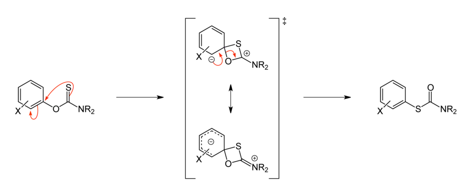 Le réarrangement de Newman-Kwart (parfois aussi « réarrangement thiono-thiolo ») est une réaction de réarrangement dans laquelle, à température élevée ou sous catalyse, un groupe aryle d'un O-arylthiocarbamate (thionuréthane, ArOC(=S)NRR') migre depuis l'atome d'oxygène vers l'atome de soufre, formant un S-arylthiocarbamate (thioluréthane, ArSC(=O)NRR')[1],[2],[3]. Cette réaction est nommée d'après les chimistes américains Melvin Spencer Newman[4] et Harold Kwart[5] qui l'ont observés pour la première fois sur des thiocarbamates en 1966. Une réaction similaire avait cependant déjà été observée sur les esters de thioacides par le chimiste allemand Alexander Schönberg (de) en 1930[6],[7].