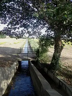 - l'Agouille de Fontcouverte, ou Fontcoberta[3] (rg), 4,6 km sur les trois communes de Perpignan (source), Villeneuve-de-la-Raho, Saleilles (confluence).