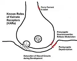 En comparaison des récepteurs AMPA et NMDA du glutamate, qui sont plus souvent étudiés, ils ont une distribution quelque peu plus limitée dans le cerveau, et leur fonction est mal définie, bien qu'ils aient été impliqués dans l'épileptogénèse, la transduction sensorielle, et la plasticité synaptique. On observe une localisation tant postsynaptique que présynaptique.