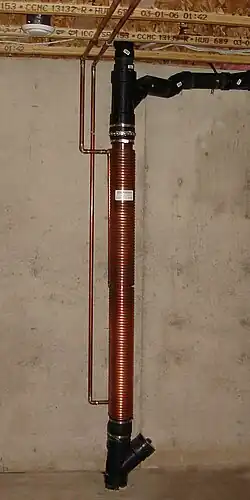Un « siphon échangeur » permet de récupérer les calories évacuées à la sortie du bac à douche ou de la baignoire. Le tube d'eau froide passe au milieu de celui d'évacuation (voir photo). Le plus efficace de ses montages (deux tubes de 1,3 m de longueur) offre une surface d'échange d'environ 1 600 cm2 et une puissance échangée de 1,5 kW, mais le débit n'excède pas les 6 L/min. Une version à quatre longueurs de tube a été réalisée mais l'eau évacuée était trop freinée par le système d'échangeurs : et le débit maximal était de 3 L/min seulement (contre environ 9 L/min pour une douche classique).